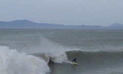 It is a powerfull lefthander, that pumps only in east swells. You drop the walls very close to the rocks and you ride them towards the middle of the beach. A lot of snaps, off the tops and floaters. Very fast wave when it pumps ok. Some short tube rides in the inside.