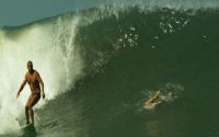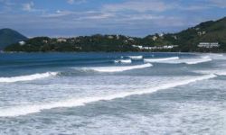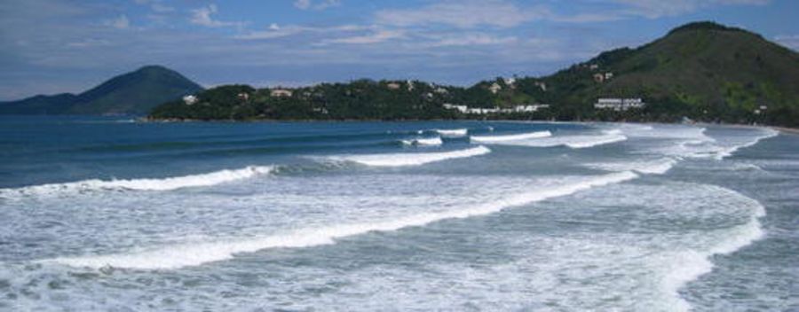 Needs either an East swell or a very strong South swell. Not so constant, since East swells are less frequent than South swells, but when it is breaking it has very fun waves. The "muro branco" spot has a long right (100m) when swell is above 1.5m. The north corner has a good left in front of the rocks that divide Toninhas and Praia Grande. This spot is called "Laje" and you may even catch a right and surf all the way to Praia Grande when the swell is above 1.5m. When the swell is smaller, the north corner has lots of fun peaks right next to the rocks.