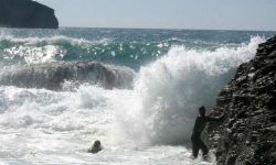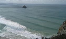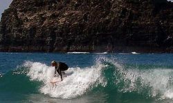 Dont be here when there is no beach Ie high tide. Can get gnarly when big. Lefthander at the south end is fun and packed with spongers. Spectacular scenery. There is also a righthand reef break around the south headland which gets super hollow and very gnarly but can give good tubes as well as ripped off fins. Access to this is by paddling around from t-strand.
