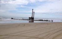 Tres Marias (three marys in english) is a very unknown secret spot in Cassino beach with one of the biggest waves in Brazil. Around 5km from the shore close to the end tip of a huge breakwater structure built to help cargo ships go to Rio Grande port by entering in the lagoon, it's a sand bar that breaks only in the right conditions but when it does it's huge and dangerous. When there are big swells it's possible to see the Tres Marias from the shore, so you can imagine how big they are (clear image from 5km away)... few locals have dropped the Tres Marias.
