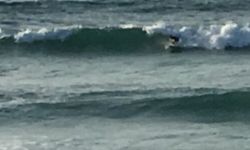 Use the rip by the large rocks in the centre of the beach to paddle outside quickly. Surf only on the right of the large rock (unless you are either Kelly Slater or need a reason to buy a new board!) many submerged razor sharp volcanic rocks dot the break to the left of the big rock. At low tide there is a small rock on the inside which can pose a threat on longer rides on regular waves.