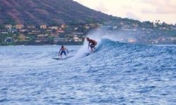 Boat or Jet-ski. 25min paddle out. Straight out Moanalua Bay from Outback steakhouse.