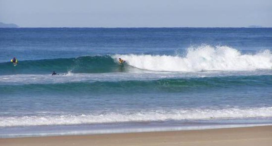 The town of Urunga is on the Pacific Highway and is accessable by car, bus, train. Go east of the highway to a caravan park and public park on the river. Walk 10 mins along boardwalk, usually breaks on south side of breakwall, sometimes right in middle of the river.