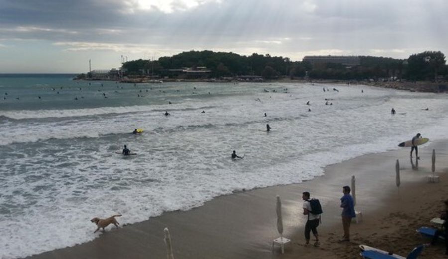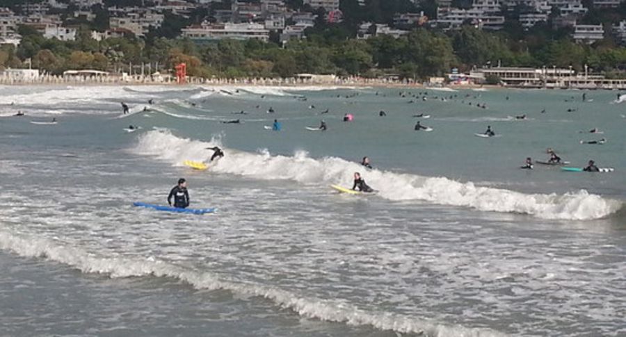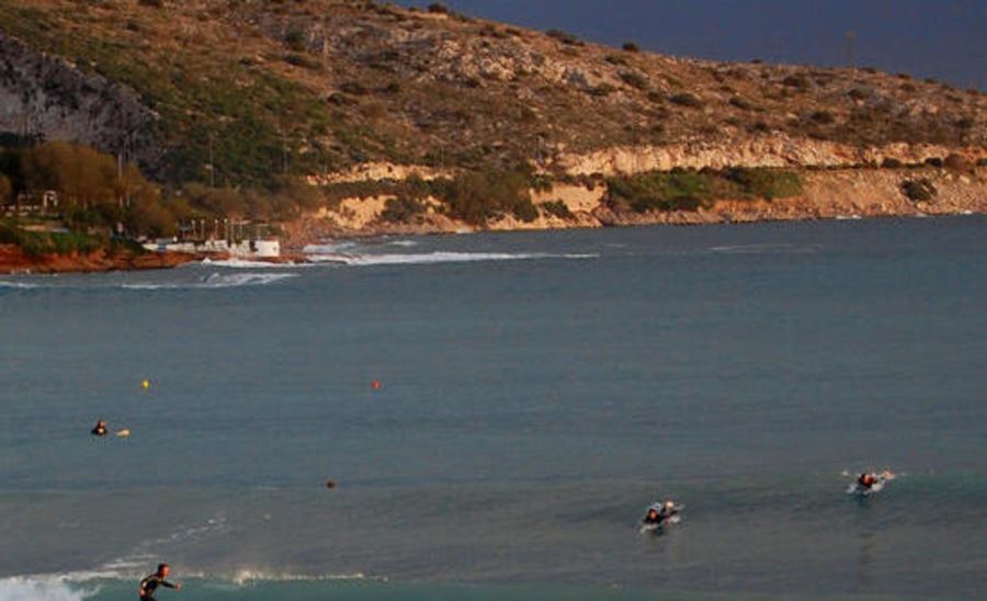 The spot is at South coast of Athens. The aeria is Vouliagmeni and we surf outside a public beach called OCEANIDA. Its 40 min. drive from the Athens airport "Eleftherios Venizelos". Vouliagmeni is a very famous and rich aria if you ark any local.