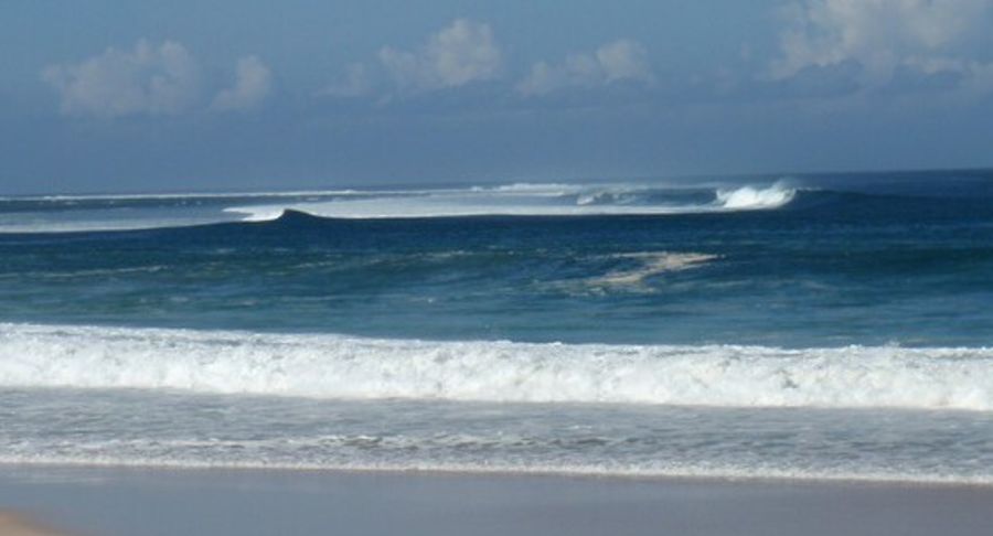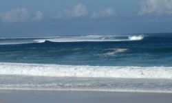 Breaks over about 100m or more, about 200m out from the shoreline, and dies out in deep water. Doesnt handle big sizes, or seem to barrel when I was there. Average.