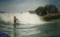 You can either paddle out and most likely get eaten by a shark or get a boat/jet-ski.