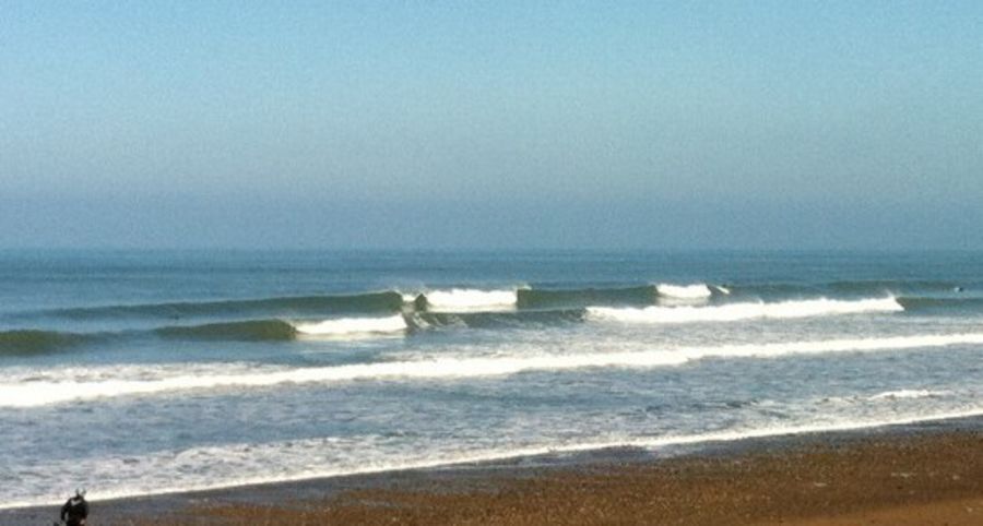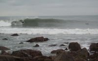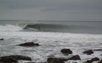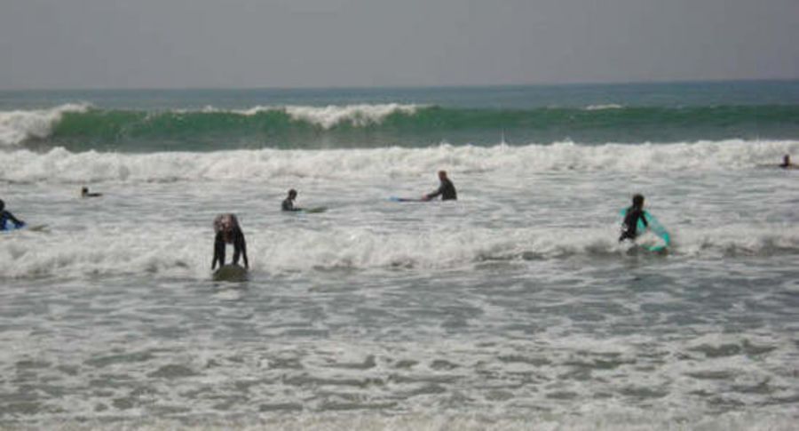 Reef at north end at high tide has fast lefts and rights, not for beginners. Various peaks up and down beach from mid-tide up. Reef/beach at south end less crowded. Not as good as Fistral, but close on good days.