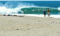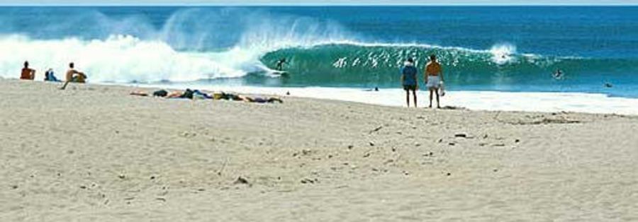 This spot is never really crowded because the beach is pretty long (3 miles) and the waves break about the same all along the beach. Tons of sandbar peaks. Can hold big swells (double overhead).